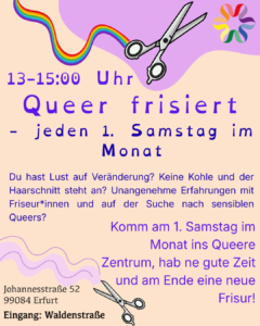Mail: info@queeres-zentrum-erfurt. de // Telefon: 0362 213 468 40
